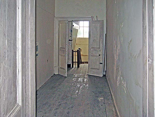 A view along the corridor looking north from the main first floor room towards the main staircase in May 2016.