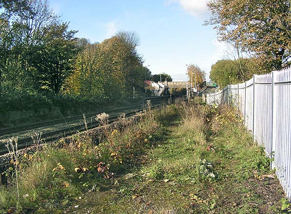 ![]() Looking northwest at Clifton Junction station in November 2010. Although the station is still open as Clifton, the platforms on the Bolton line have been shortened. This picture is taken from the point where the platform ramp at the southern end of the up Bolton line platform and the down Accrington line platform was; both of the platforms joined here. The station building was behind the fence where the trees are seen.
