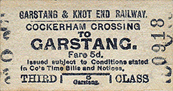 Notes: Cockerham Cross Halt was originally known as simply Cockerham Cross (or sometimes as Cockerham Crossing) and it was a stopping point on the Garstang & Knot (sic) End Railway (G&KER) from when the line opened on 5 December 1870. At the time of opening the line ran between Garstang station on the London & North Western Railway (LNWR) and Pilling, a distance of 7 miles. The LNWR Garstang station was located on their west coast trunk route between London and Glasgow and it was 1¾ miles from the town.To avoid confusion the LNWR station was referred to as Garstang Junction from 1870 (although officially it was still Garstang). Originally the G&KER had been authorised on 30 June 1864 to build an 11 mile 29 chain line between Garstang & Catterall and Knott End but financial difficulties resulted in Pilling becoming the western terminus..