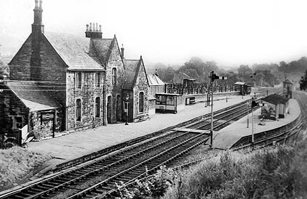 ![]() Cockermouth station looking north-east from Station Road bridge in 1955. This appears to have been the only station on the CK&P to have been fitted with LMS ‘Hawkeye’ nameboards, one of which is displayed in front of the near-end single-storey section of the building. It is placed diagonally to the line of the platform as was sometimes the practice to allow it to be more easily read by passengers on trains arriving at that platform (unless they were seated facing backwards)!