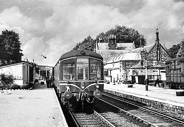 Photo copyright ColourRail ![]() Cockermouth station is seen in September 1959, looking west on the island platform. The ‘Derby Lightweight’ diesel multiple units were introduced on the Penrith – Workington route in January 1955, and one of these stands at the platform carrying the ‘whiskers’ design above the buffers.