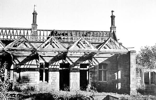 Cockermouth station building in November 1975 during demolition. The waiting room is seen devoid of its timber and glass front.