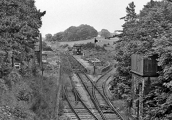 Photo from Cumbrian Railway Association ![]() Looking south-east towards Cockermouth station from Station Road bridge in 1968. two years after the last train ran between Keswick and Workington. The track is overgrown and the down platform building has been demolished. The next train running into Cockermouth would be the demolition train.