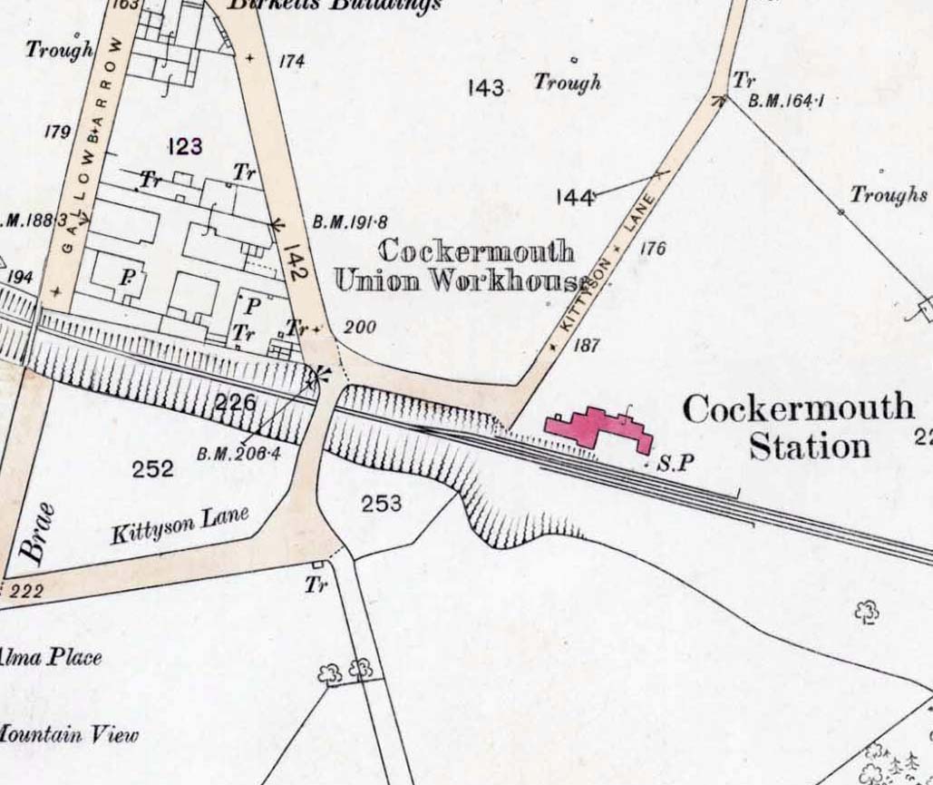 1866 1: 2,500 OS map. The Second Cockermouth station opened in 1865. This map was revised in 1863 and published in 1866 so the limited detail of the station site, showing only the main building and location of the two platforms, is presumably a late addition.