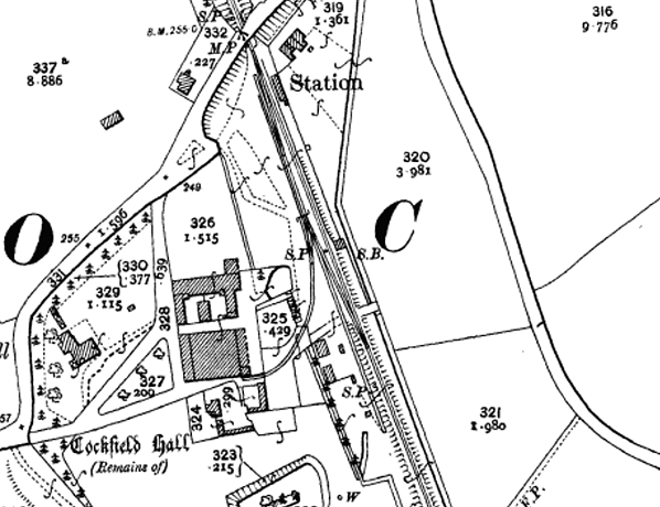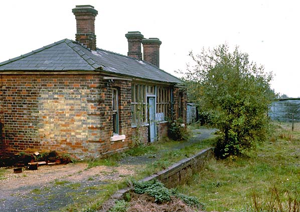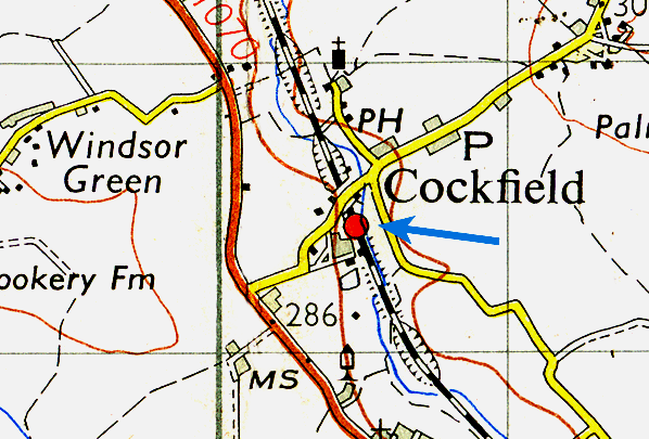 Notes: Cockfield station had a single platform on the down side of the line with a single-storey rectangular brick building with a hipped slate roof. This comprised a booking office, waiting room and ladies room with a gents; toilet at the north end. Opened as Cockfield, the station was renamed Cockfield Suffolk on 1 October 1927 to avoid confusion with Cockfield in Durham which was itself renamed Cockfield Fell in 1923.