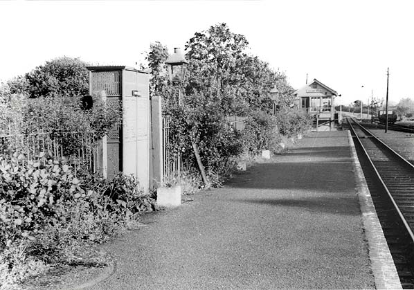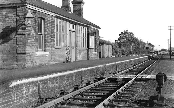 Access to the yard was controlled by a signal box on the down side at the end of the platform, this was build around the turn of the 20th century. After closure to passenger traffic in 1961 the station remained open for goods traffic until 19 April 1965.