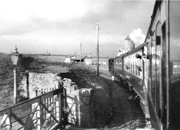 ![]() On 18 April 1959 the Stephenson Locomotive Society 'Wrexham & District Railtour' arrives at Coed Poeth station after visiting Minera. The train stopped at Coed Poeth to take on water before proceeding to Wrexham.
