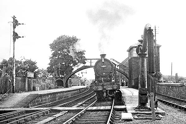 Photo by Les Turnbull ![]() Looking south at Coldstream station on 28 June 1957 with a local train hauled by J39 No.64917 which will call at Norham and Tweedmouth, before reaching its destination of Berwick-upon-Tweed. The water crane stands in the foreground. To the right are a siding and loading bank.