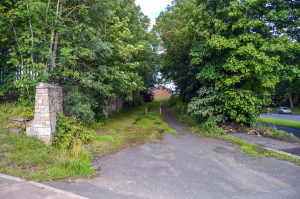 The former approach to the station building at Coldstream, looking east in July 2015.
