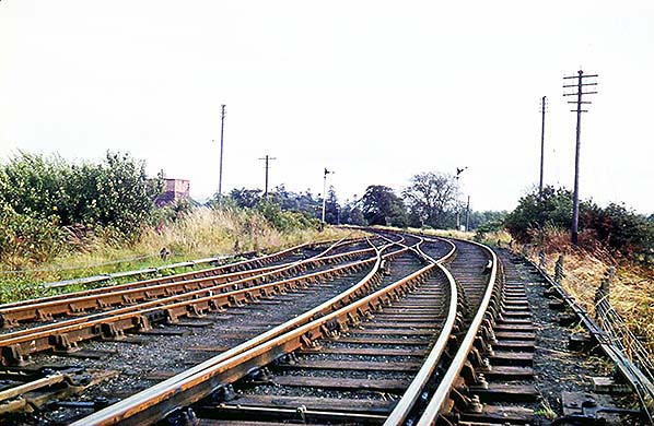 ![]() Trackwork of the Berwick – Kelso line and sidings near Coldstream c1964.