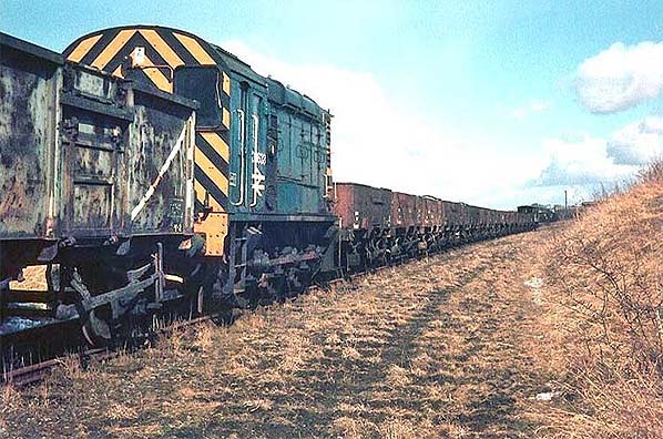seen far right. Photo from Railways of Berwick and the Eastern Borders Facebook Group ![]() North-east of Coldstream station in 1969 D3638 is with a contractor’s train engaged in removing the up track of the former NER Kelso Branch; the down track had been removed in 1966. Much of the track lifting and recovery work on this line was undertaken by private organisations on behalf of British Rail. The diesel loco seen here had previously been withdrawn but was subsequently reinstated and leased out to the firm concerned for this specific purpose.