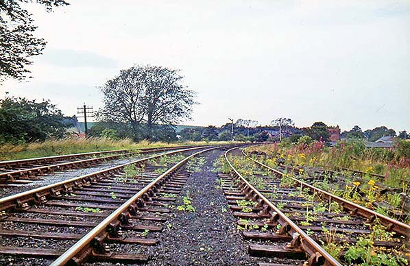 ![]() Station Name: COLDSTREAM![]() Looking north towards Coldstream station c1964. The sidings and line towards Wooler on the right have been colonised by weeds. Goods services on the lines from Coldstream to Wooler and Kelso ceased in March 1965.
