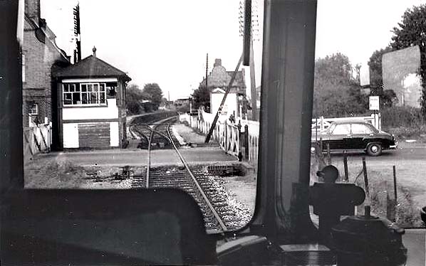 The Bath Road crossing and Colnbrook station seen from the rear of a southbound DMU in 1963.