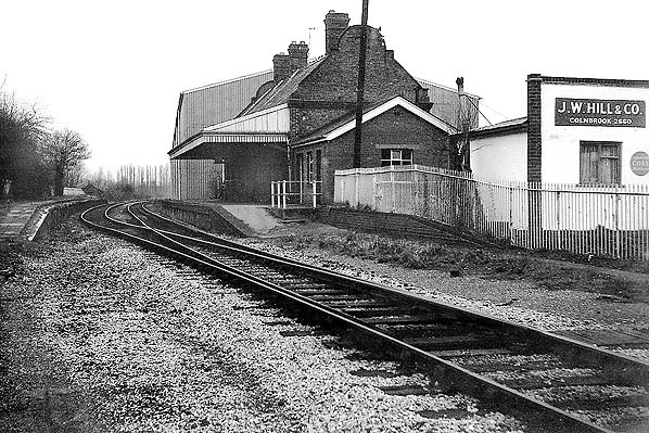 Colnbrook station looking north in 1972. Note the edge stones have been