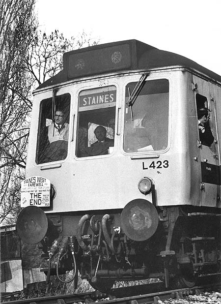 ![]() The BR (WR) 'Farewell to Staines West Branch' railtour heading south from Colnbrook on 24 January 1981. This was the last passenger train to run south of Colnbrook and the only passenger train to run from the Staines West branch to Staines Central using the recently built spur line. Photo by Chris Totty