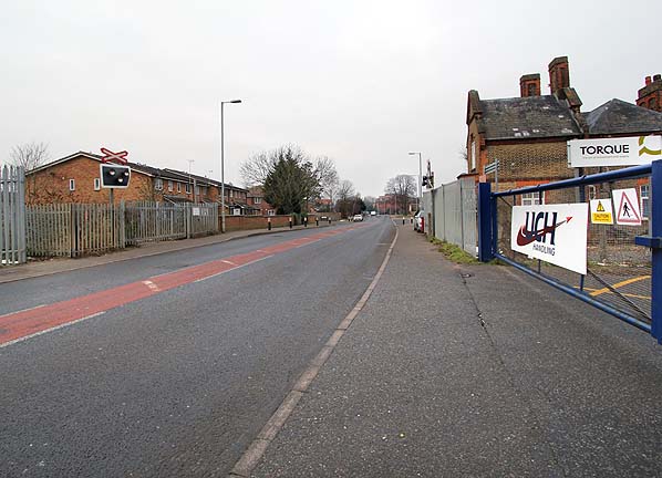 The site of Bath Road level crossing looking west in February 2012. The stationmaster's house is seen on the right.