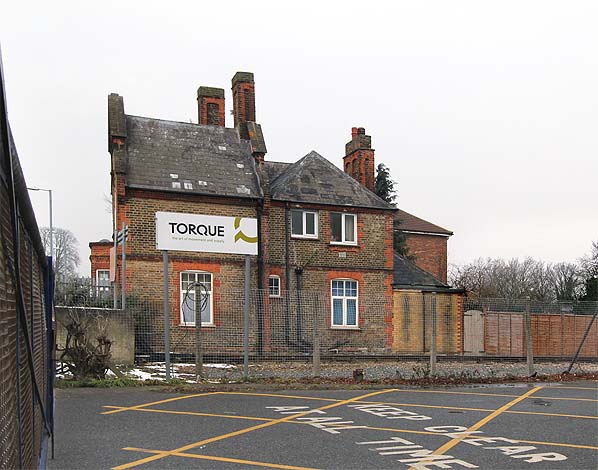Side view of Colnbrook stationmaster's house in February 2012. The signal box was sited in front of the 'Torque' sign.