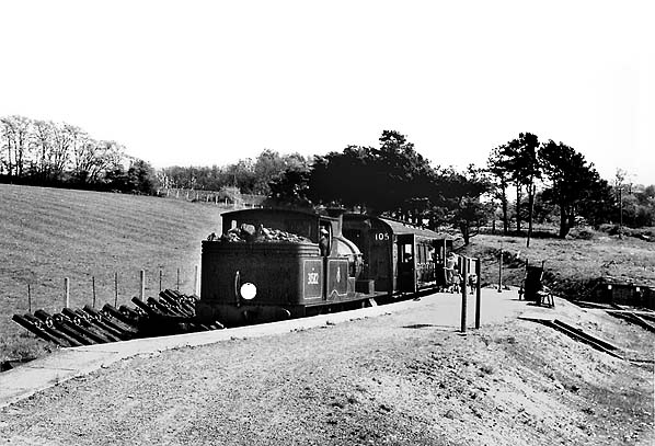 An Axminster train has just arrived at Combpyne station from Lyme Regis in May 1960. This view clearly shows where the up side of the former island platform has been removed,