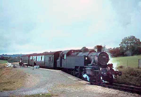 Combpyne station looking north in August 1963. In the winter one coach would normally suffice but in the summer two or sometimes three were used.