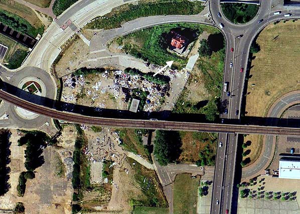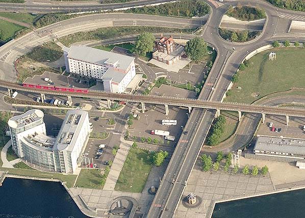 ![]() Connaught Road Station was sited immediately to the south of the Connaught Tavern pub which can be seen top centre in the 2006 aerial photograph. In the earlier photograph below the line of Connaught Road to the right of the pub is still visible (the road has now gone) and an arrow indicates the position of the station. ![]()