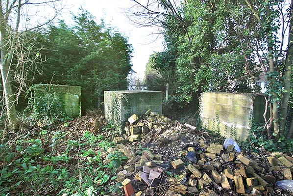 The embankment on the south side of Coombe Road in January 2008. The concrete blocks are WW2 anti-tank defences. Many of these are still to be found alongside the line between Coombe Road and Selsdon. Photo by Nick Catford