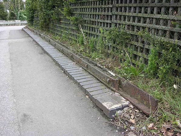 The infilled Station Road bridge in 2005 - the metal 'buttress' may be of railway origin Photo by Mike Abbott