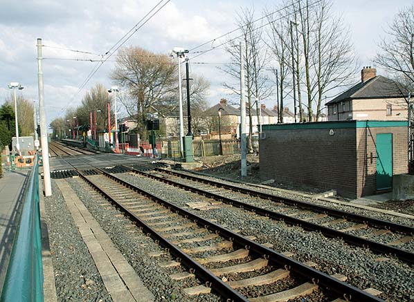 Looking west towards the site of Coxlodge Station in April 2009. The platform started immediately beyond the level crossing.
