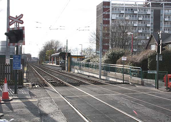 Looking west at the site of Coxlodge Station's eastbound platform in April 2009. The platform started immediately after the level crossing