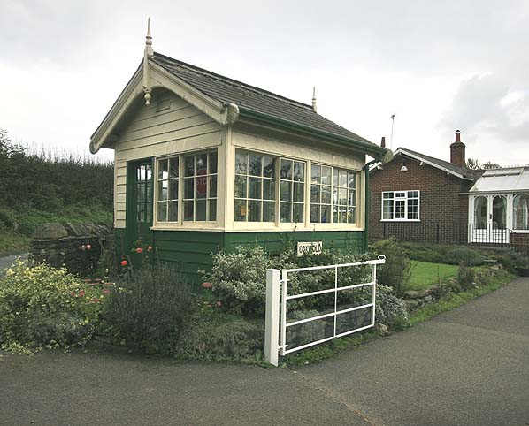 ![]() Coxwold gate signalbox and gatekeeper's cottage in September 2008. The sign on the signalbox does not appear in a 1960's picture so is assumed to be a reproduction.