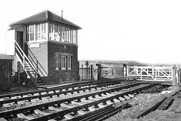 ![]() Crag Mill signal box is seen in this 1960s view, looking west. The box was constructed by October 1877 and was a brick-built North Eastern Railway N2 design. In 1962 it was reduced to gate box status, closed in 1977 and subsequently demolished.