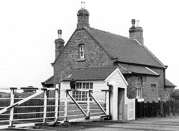 ![]() Crag Mill crossing keeper’s cottage and timber cabin looking north-east over the level crossing in 1966. The cottage is brick-built, whilst others on the Newcastle & Berwick Railway were of stone and its design bears only a weak resemblance to them. The passenger station here was to the north-west of the crossing – that is to say, to the left of the picture - and it appears to have been in use by 1857 and closed in 1877. The cottage was possibly pressed into service as accommodation for station staff during this period.