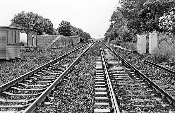 ![]() Looking north-west from the level crossing at Crag Mill in August 1986.