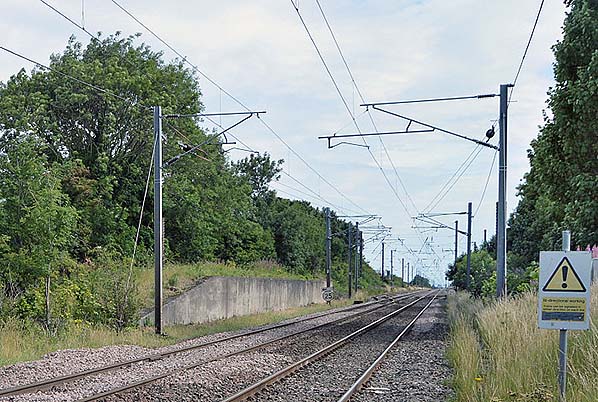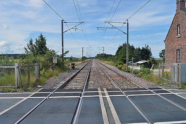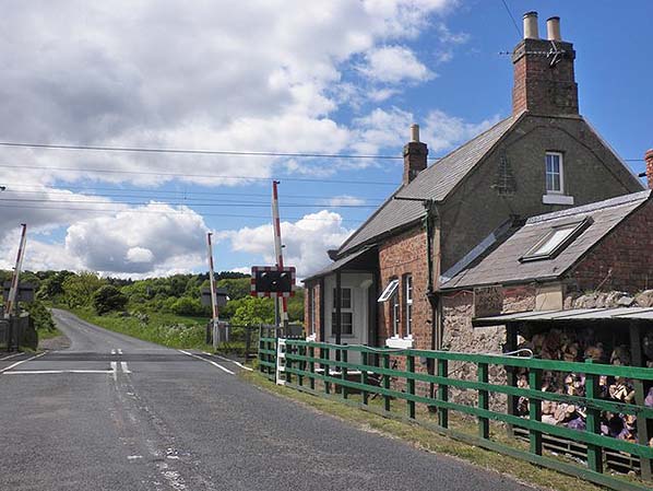 ![]() Looking north at Crag Mill on 30 July 2015. The crossing keeper’s cottage is beyond the level crossing. Virgin East Coast 82 206 is working the 1E 19 14:30 Edinburgh – London Kings Cross service and passing the site of the short-lived passenger station.
