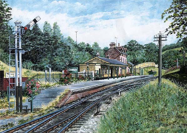 is seen in the distance. Photo by Marathon, reproduced from Geograph under creative commons licence ![]() A oil painting showing Cranbrook station in Summer 1959. The original hangs in the station