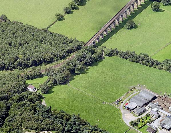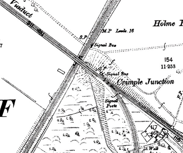 Notes: This short-lived station was at the junction of the Church Fenton and Arthington lines, immediately south-east of the Crimple Viaduct. There is no other information about it. According to Ken Hoole in North-eastern Locomotive Sheds there was supposedly a short-lived one-road shed at Crimple Junction but again there is no other information. With the country in the grip of 'railway mania' in the 1840s Harrogate was an obvious target for railway entrepreneurs who were eager to cash in on the town’s popularity, with its wealthy clientele able to pay high fares. In Harrogate local townsfolk and businesses initially opposed the railway, fearing that an influx of people from Leeds and Bradford would lower the tone of the area; but this opposition was overcome. It was going to be a race to see who would be first to reach the town. The York & North Midland Railway (Y&NMR) opened in 1839, connecting York with the Leeds & Selby Railway and, in 1840, with the North Midland Railway at Normanton near Leeds. The line was largely financed by ‘Railway King’ George Hudson who invested a substantial inheritance in the North Midland, becoming a director. He then took an active part in the promotion of the route and commissioned George Stephenson to construct the line. Having completed the York line, George Hudson then turned his attention to Harrogate, proposing a branch to the town from a junction with the Y & NM at Church Fenton, ten miles south of York. The final player was the Leeds & Thirsk Railway (L &TR) who had an ambitious scheme for a new main line linking the industrial regions around Leeds with the north-east. George Hudson had an interest in this scheme as well. George Hudson was clearly keen to increase the size of his empire, and by 1845 he had taken a lease on the GNER, and he immediately withdrew the Pilmoor - Harrogate proposal to leave the way clear for the two other routes. The Y&NMR obtained their Act for the Church Fenton - Harrogate line in 1845, and the eighteen-mile route was staked out in September of that year. It was opened in two stages, with the first 13-mile section between Church Fenton and a temporary terminus at Spofforth opening on 10 August 1847. There were intermediate stations at Stutton, Tadcaster, Newton Kyme, Thorp Arch and Wetherby, with passengers being conveyed the last five miles into Harrogate by horse-drawn omnibus. The only engineering feature of note was a two-span iron girder bridge over the River Wharfe between Newton Kyme and Thorp Arch. The shorter five-mile section between Spofforth and Harrogate took a further year to complete owing to much more difficult terrain, with a gradient of 1 in 36 taking the line up to the unusually narrow 825yd Prospect Tunnel in which trains were not permitted to pass; then 300yd from the tunnel portal, the line crossed the 624yd, 31-arch, Crimple Viaduct which towered 110ft above the valley floor at its highest point. Beyond the viaduct the line went through the 400yd Brunswick Tunnel before entering the terminus at Harrogate Brunswick. (This was the official name of the station, although in timetables it was shown only as Harrogate). The extension to Harrogate opened, without prior announcement or ceremony, on 20 July 1848.The initial service was five trains per day in each direction with no trains on Sunday. Within two years this had been reduced to three trains each day, probably owing to the opening of the Leeds & Thirsk Railway just five weeks later on 1 September 1848; their station was 1¾ miles to the east at Starbeck. When completed in July 1849, this line provided a more direct route to Leeds without the need to change at Church Fenton. The L&TR had planned to extend their line into Harrogate, but this had to be shelved because of the higher than expected cost of completing their line between Leeds and Starbeck. In an attempt to prevent competitors from encroaching on its territory, a direct Leeds to York railway was promoted by George Hudson through the Y&NMR. The construction of the line was authorised in 1846 and was to run from Copmanthorpe on the outskirts of York to Cross Gates, several miles east of Leeds, joining the Church Fenton to Harrogate line between Tadcaster and Stutton. In 1849 George Hudson was forced to resign as chairman of the York & North Midland Railway following his involvement in dubious business activities. The collapse of railway investment in 1849 resulted in the abandonment of the project, but a ten-arch stone viaduct over the River Wharfe at Tadcaster had already been constructed. The need for the line evaporated with the opening of the Micklethorpe to Church Fenton line in 1869 although the viaduct did eventually see rail traffic in the form of a siding serving a flour mill on the east side of the river. The siding closed in 1955. The viaduct is Grade II listed and is owned by Tadcaster Town Council; it now carries a public footpath and cycleway. The L&TR was renamed the Leeds Northern Railway in 1851, and it was joined by the East and West Yorkshire Junction Railway from York at Knaresborough, east of Harrogate. In 1854 the York & North Midland Railway amalgamated with the Leeds Northern Railway and the York, Newcastle & Berwick Railway to form the North Eastern Railway (NER) which brought control of all the railways in the region under one company. The fledgling NER was quick to improve the railway layout around Harrogate. The NER built a spur from the former L&TR line at Pannal to join the Y & NMR line west of Prospect Tunnel. Just short of Brunswick Tunnel another new line was built to join the line from Starbeck enabling trains to run into a new central station which opened on 1 August 1862. Brunswick station was closed; initially it was retained for goods traffic, but this was short-lived. By 1880 the service between Harrogate and Church Fenton was restored to five trains per day.