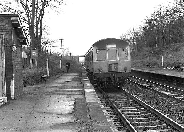 A DMU leaving Croft Spa for Darlington on 1st March 1969, the last day of public service.
