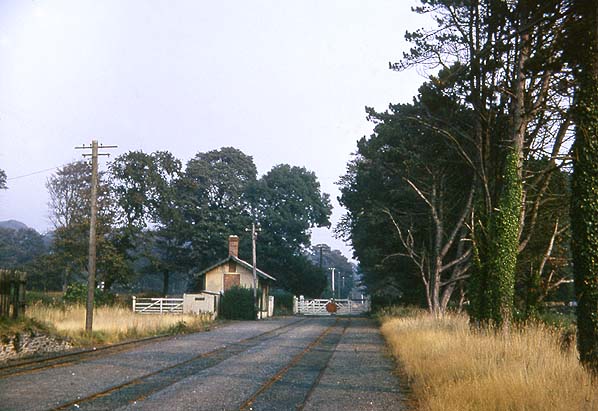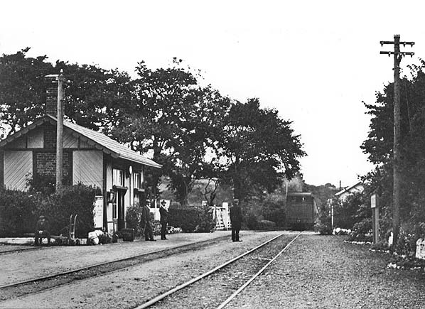 The station was situated on the west side of a level crossing. It was not provided with raised platforms but had a wood and brick building situated on the west bound (Douglas) side of the station. The station was also provided with goods facilities comprising two sidings serving a raised cattle dock and a small goods shed..