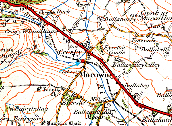To see other stations on the Douglas - Peel line click on the station name: Quarter Bridge, Braddan Halt, Union Mills, Ballacraine Halt, St. Johns & Peel. See also Knockaloe