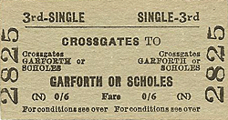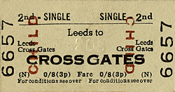 In the past sign-writers have been unsure of the correct spelling of Cross Gates, with ‘Cross Gates’ on the westbound platform and 'Crossgates' on one sign on the eastbound platform, and tickets have given both forms of the name. This confusion is historic: it is also spelt as either one word or two in early records and sometimes without ‘s’ at the end of 'gate'. Nowadays only the 'Cross Gates' spelling is used.