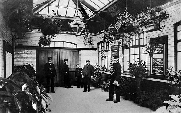 Inside the street-level Cross Gates booking office before April 1908. At this time flowers were seen everywhere in the station.
