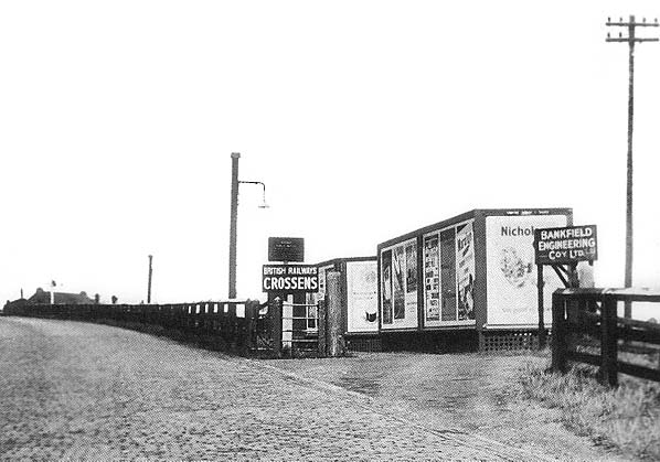 The entrance to the goods yard at Crossens station looking north in 1950. The roof of the passenger station can be seen to the left.