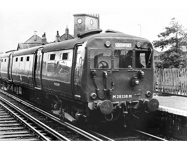 ![]() An ex-LMS EMU (later to become class 502) at Crossens station in the 1950s. The train is seen standing at the down (Preston direction) platform. It would have departed north for a short distance before reversing into the up (Southport direction) platform. From there passengers would have boarded for a service to Southport.