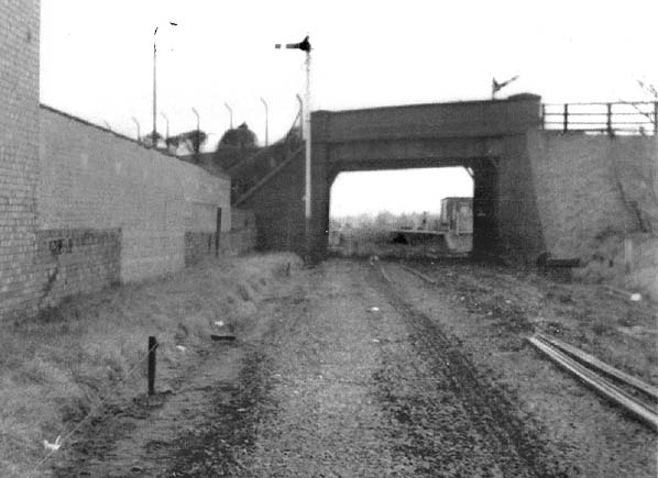 Looking north-east towards Crossens station in March 1965 shortly after the line had been lifted. Signals were in situ including an ‘up’ line signal which had been left in the off position probably by a signalman making a last act of defiance against the closure of the line.