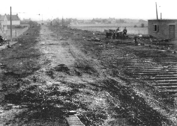 Looking north-east from the end of the down platform at Crossens station in March 1965. The track had only just been lifted and materials such as sleepers were being recovered.