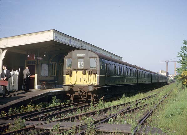 The last through train from Broad Street after arrival at Croxley Green on 3 June 1966. This view shows the layout with the goods yard reception road which was still still in use at this time.
