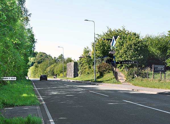 Cwm-y-Glo was the busiest intermediate station on the line for passenger traffic. The station served Cwm-y-Glo and its surrounding villages. It was situated partly in a cutting which was crossed by the original Caernarfon to Llanberis road. The station was located on a 1:144 rising gradient towards Caernarfon, just over a mile from Pontrhythalt. The design was similar to that of Pontrhythalt, but without a platform canopy, and included living accommodation, a booking hall and office, waiting room and toilets.