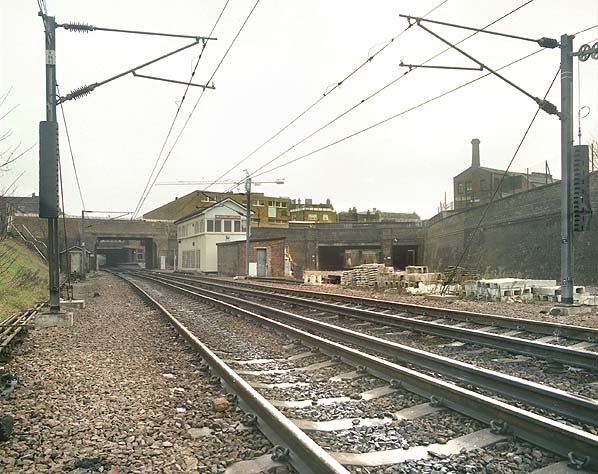 Western Junction in December 1987. Dalston Junction is to the right. The reopened Dalston Kingsland Station can be seen to the left.