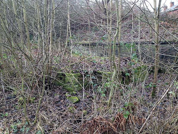 Remains of the Daresbury station building on the down platform seen in February 2013.