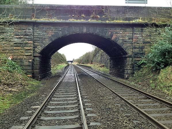 Daresbury station looking south-west from the north side of Runcorn Road in February 2013.