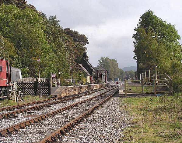 Darley Dale's second station looking south in October 2009. The station has been restored by Peak Rail and the waiting room on the southbound platform has a museum devoted to the Midland Railway.